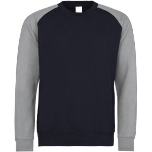 Twin needle stitching detailing. Ribbed crew neck. Retro stylish fit. Contrast raglan creates ideal printing surface. Custom Labeling for your brand
