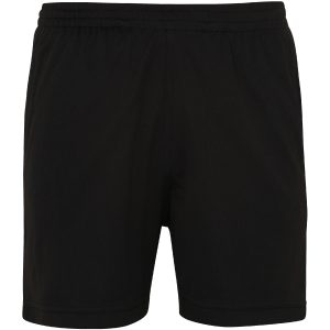Sport shorts. Knee-length. Elasticated waistband. 2 side pockets and one back patched pocket. Bottom hem with double top stitching. Side seams.